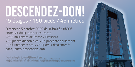 Descendez-Don! 2025 • Groupe 11 • 11h00 à 12h00 • Deux descentes • 110216